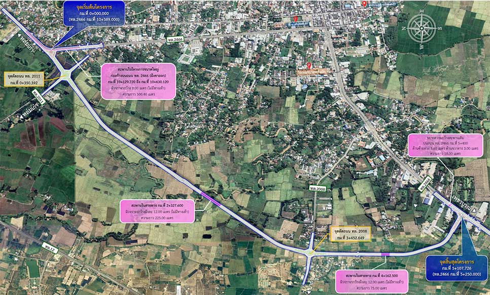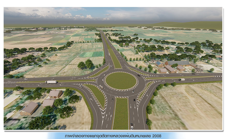 (4) ทางแยกจุดตัดทางหลวงแผ่นดินหมายเลข 2008 บริเวณ กม.ที่ 3+452.649 (ทล.2008 กม.ที่ 1+615.000) จัดจราจรรูปแบบวงเวียนขนาด 2 ช่องจราจร ความกว้างช่องจราจรละ 4.00 เมตร ไม่มีสัญญาณไฟจราจร และมีช่องจราจรเลี้ยวซ้ายแยกออกจากทางหลัก จำนวน 1 ช่องจราจร ความกว้างช่องจราจรละ 4.00 เมตร ความกว้างไหล่ทาง 2.50 เมตร และปรับปรุงขยายช่องจราจรบนทางหลวงแผ่นดินหมายเลข 2008 ตั้งแต่ กม.ที่ 1+381.272 ถึง กม.ที่ 1+849.288