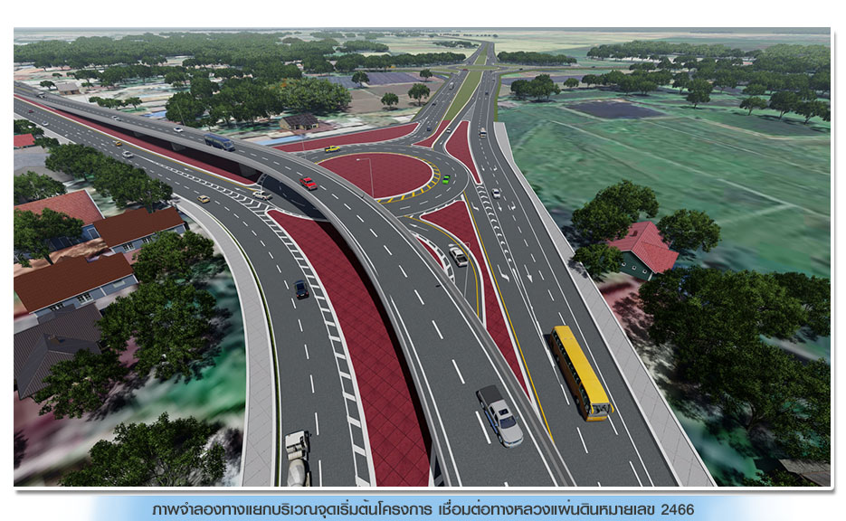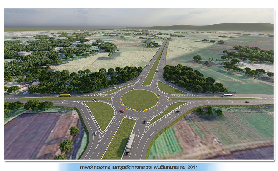 (3) ทางแยกจุดตัดทางหลวงแผ่นดินหมายเลข 2011 บริเวณ กม.ที่ 0+350.392 (ทล.2011 กม.ที่ 0+486.250) จัดจราจรรูปแบบวงเวียนขนาด 2 ช่องจราจร ความกว้างช่องจราจรละ 4.00 เมตร ไม่มีสัญญาณไฟจราจร และมีช่องจราจรเลี้ยวซ้ายแยกออกจากทางหลัก จำนวน 1 ช่องจราจร ความกว้างช่องจราจรละ 4.00 เมตร ความกว้างไหล่ทาง 2.50 เมตร และปรับปรุงขยายช่องจราจรบนทางหลวงแผ่นดินหมายเลข 2011 ตั้งแต่ กม.ที่ 0+212.436 ถึง กม.ที่ 0+698.951