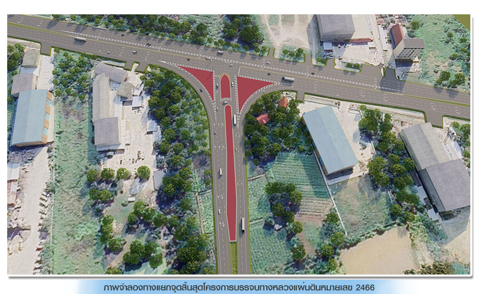 (5) ทางแยกบริเวณจุดสิ้นสุดโครงการ เป็นทางแยกระดับพื้นดินรูปตัว T มีช่องจราจรเลี้ยวซ้ายแยกออกจากทางหลัก พร้อมติดตั้งสัญญาณไฟจราจร และปรับปรุงขยายช่องจราจรบนทางหลวงแผ่นดินหมายเลข.2466 (บริเวณตั้งแต่ กม.ที่ 4+896.459 ถึง กม.ที่ 5+600.000) จำนวน 1 ช่องจราจร สำหรับรถที่รอเลี้ยวขวาเข้าสู่ถนนโครงการ และรถที่เลี้ยวขวาออกจากถนนโครงการเข้าสู่ทางหลวงหมายเลข 2466 โดยรถจากทิศทางหล่มสักมุ่งหน้าจังหวัดเพชรบูรณ์สามารถผ่านแยกไปได้โดยไม่ติดสัญญาณไฟจราจร