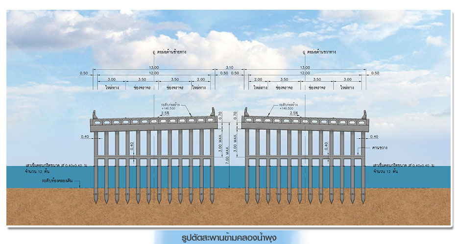 • สะพานข้ามคลองน้ำพุง บริเวณ กม.ที่ 2+327.600 รูปแบบ BOX GIRDER ความยาว 225.00 เมตร