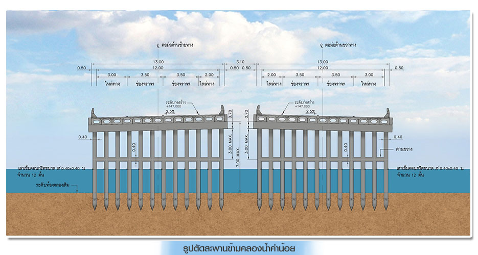 • สะพานข้ามคลองน้ำคำน้อย บริเวณ กม.ที่ 4+162.500 รูปแบบ BOX GIRDER ความยาว 75.00 เมตร